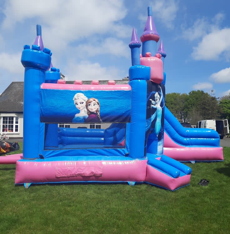 Give your little ones a magical adventure with the Elsas Frozen Castle featuring a fun slide! This enchanting inflatable castle brings the beloved world of Elsa and Frozen to life, making it the perfect centerpiece for any celebration. Whether it's a birthday party, family gathering, or community event, this castle guarantees hours of excitement and laughter for children.